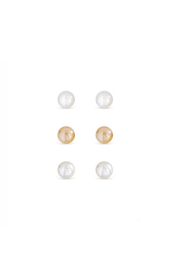 Earsense FC296 Gold, Silver Ball & Pearl Stud Trio