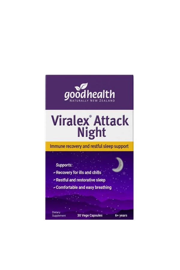 Good Health Viralex Attack Night is a unique scientifically researched formulation that supports your sleep, clear airways and immune system all in one. It contains herbs like olive leaf which provides...